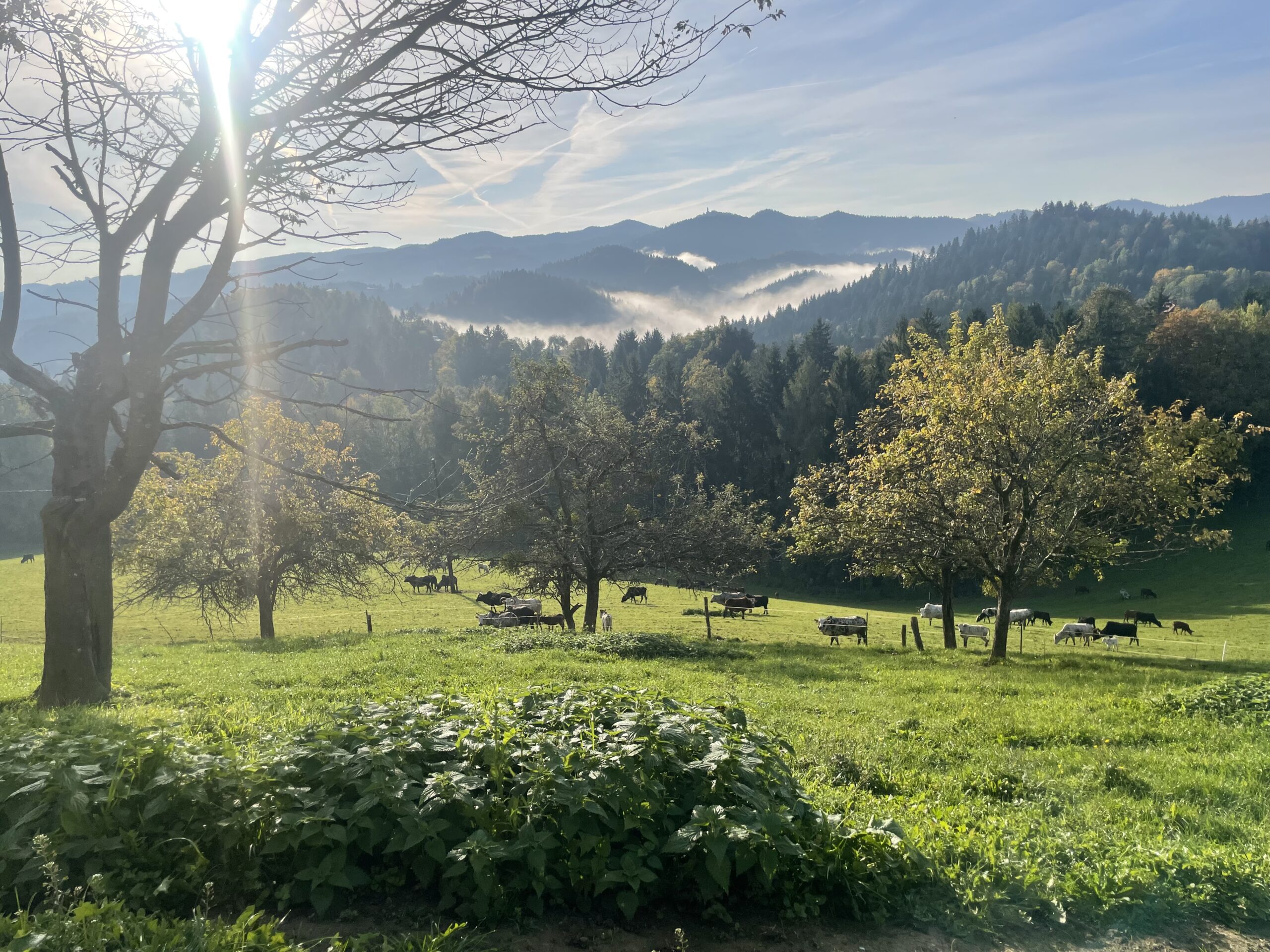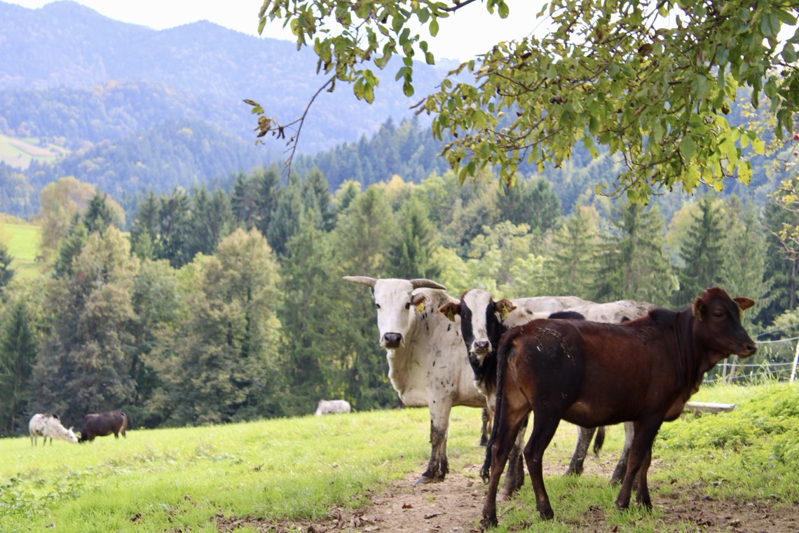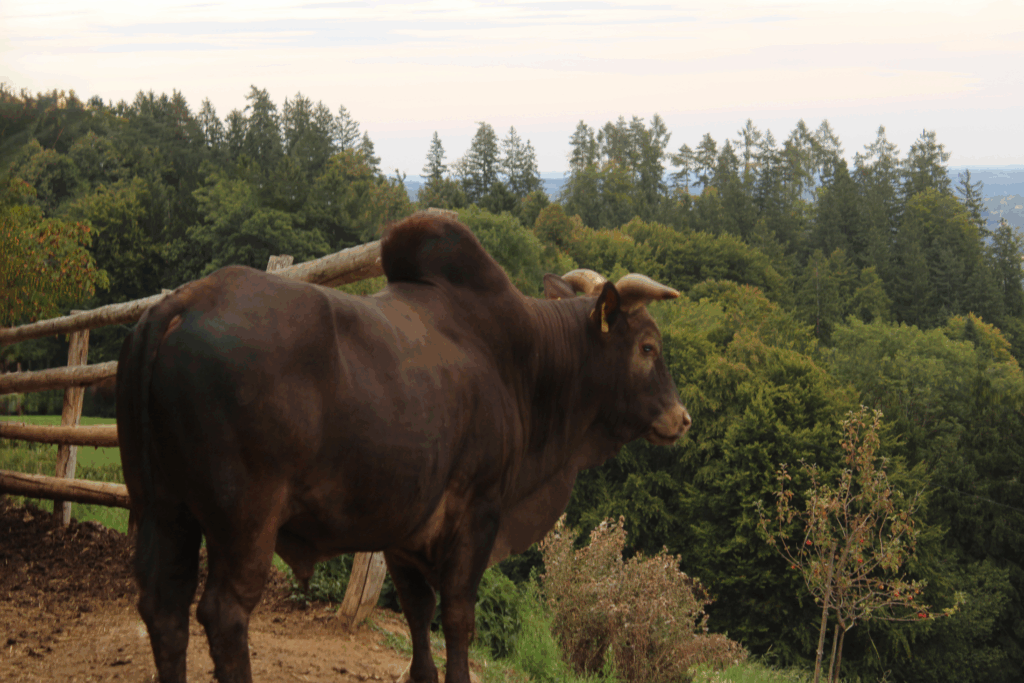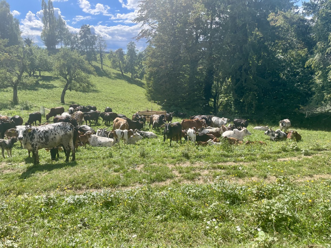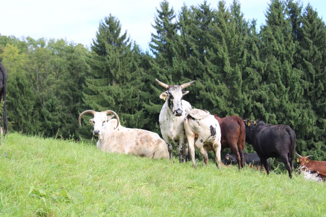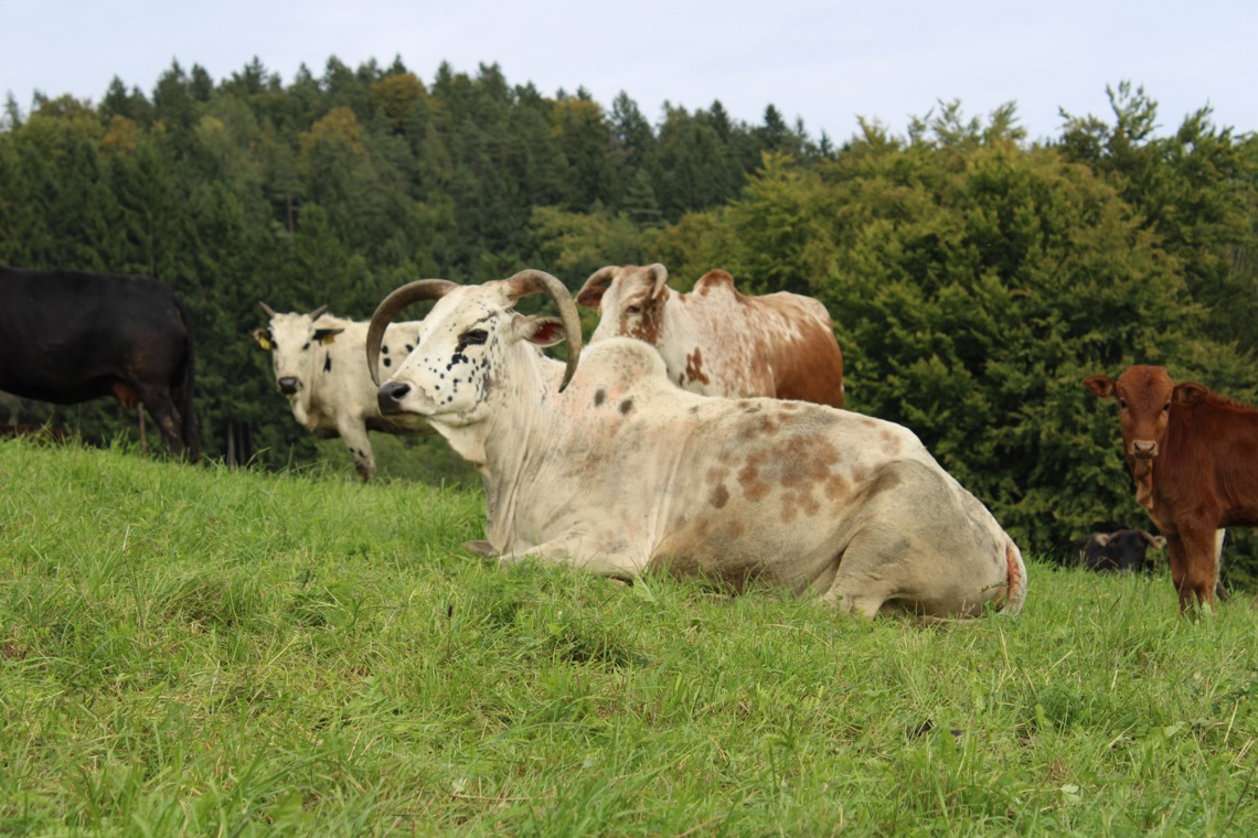 Zeburinder passen sehr gut in unser Landschaftsbild. Durch ihr niedriges Gewicht verursachen sie wenig Trittschäden.